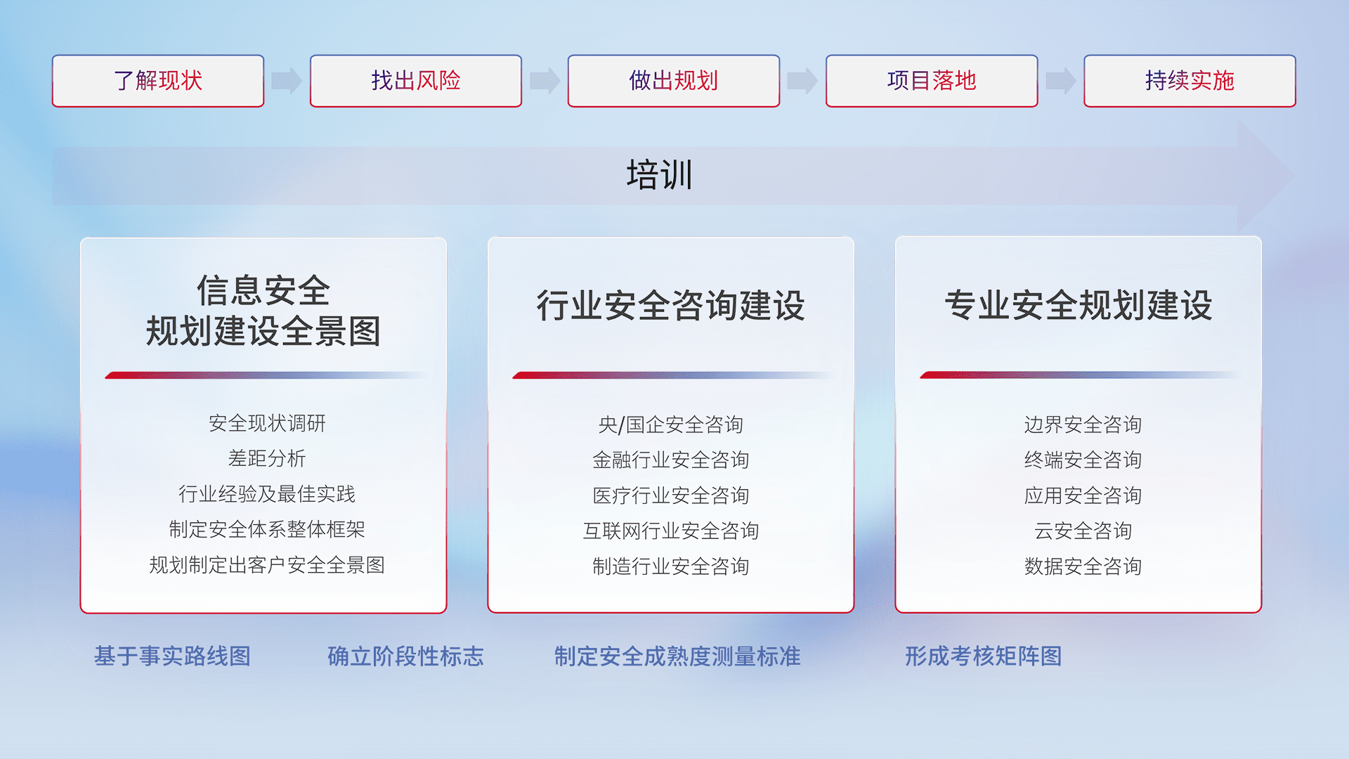 针对客户行业特性,,将宏观的安全战略和需求,,通过专业的交付服务,,实现项目落地,,,为客户提供标准规范的集成交付服务。。